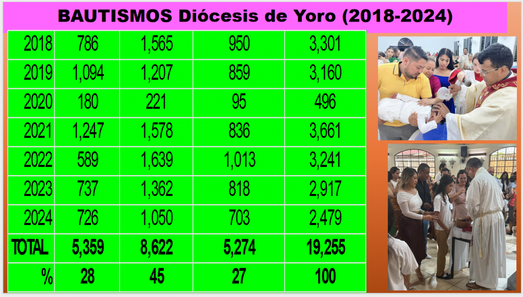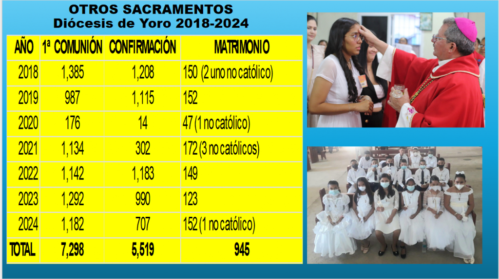 Durante el período 2020–2024, la Diócesis de Yoro ha logrado avances significativos en las cinco líneas de acción del Plan Pastoral vigente: familia, formación, El ICA, pastoral vocacional, misión y cuidado de la Casa Común.